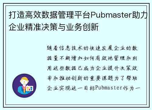 打造高效数据管理平台Pubmaster助力企业精准决策与业务创新