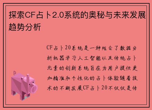 探索CF占卜2.0系统的奥秘与未来发展趋势分析